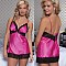 Секс шоп » Эротическое белье » Халаты, пижамы » Легкая и элегантная домашняя сорочка из блестящего синего атласа, окантованная черным кружевом. Соро