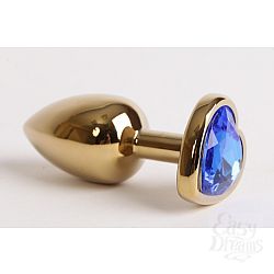 Секс шоп » Анальные игрушки » Анальная ювелирка » Анальная пробка золото 8х3,5см с сердечком синий страз 47190-1-MM