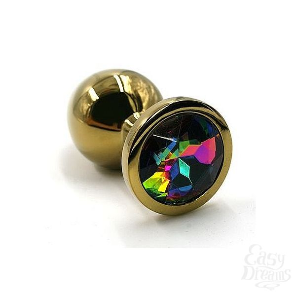 Секс шоп » Анальные игрушки » Анальная ювелирка » Золотистая алюминиевая анальная пробка с радужным кристаллом - 6 см.
