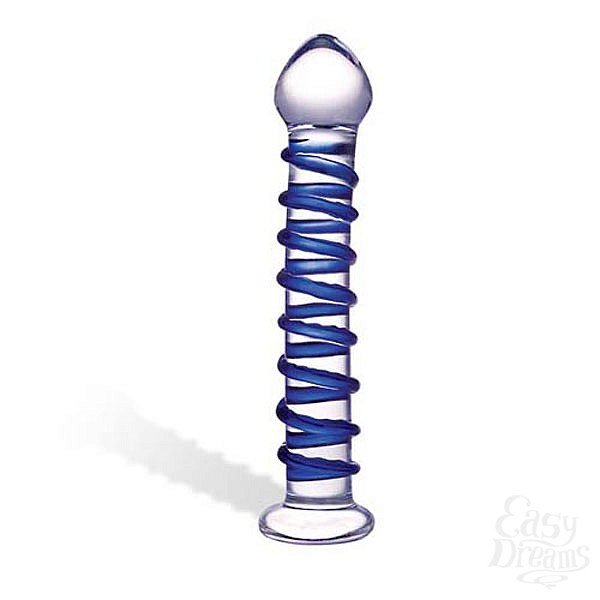 Секс шоп » Фаллоимитаторы » Без мошонки » Стеклянный фаллоимитатор с голубой внешней спиралью, 18,5 см