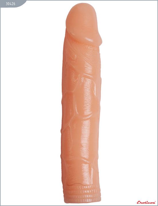 Закрытая насадка на фаллос с кольцом для мошонки - 15 см.