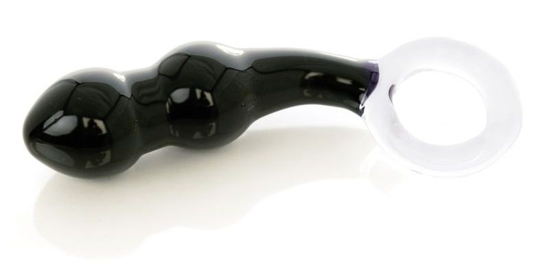 Секс шоп » Анальные игрушки » Из стекла » Чёрный анальный стимулятор из стекла с ручкой-кольцом - 11,5 см.