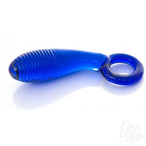 Секс шоп » Анальные игрушки » Из стекла » Синий анальный стимулятор из стекла с ручкой-кольцом - 11,6 см.