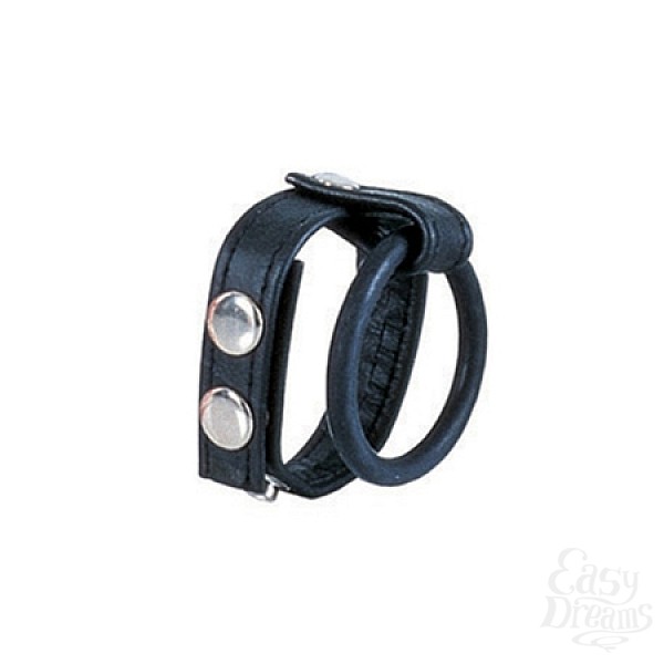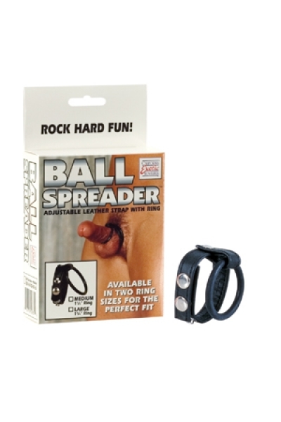 Утяжка на пенис BALL SPREADER MEDIUM – два совместных эрекционных кольца: резиновое для пениса и кожаное для мошонки, регулируется кнопками.