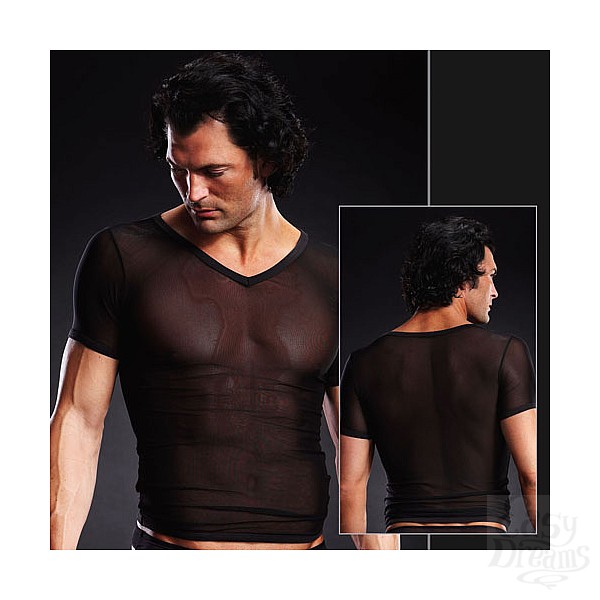 Секс шоп » Эротическое белье » Эротическое белье мужское » Мужские майки и футболки » Сетчатая футболка черная BLM020-BLK S / M
