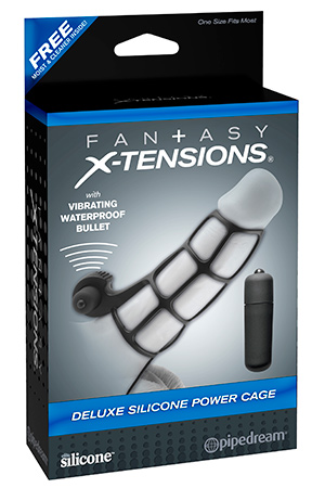 Секс шоп » Насадки / Кольца » Насадки на пенис с вибрацией » Насадка стимулирующая Deluxe Silicone Power Cage с кольцом на мошонку черная с вибрацией