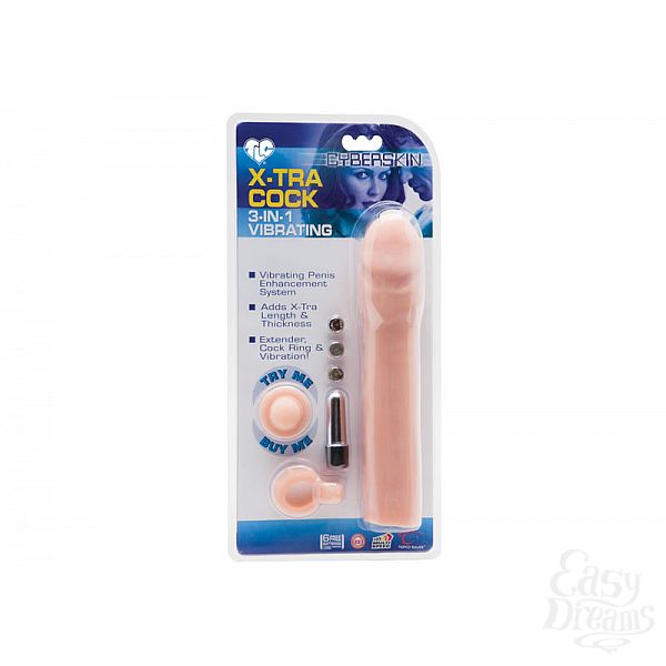 Секс шоп » Насадки / Кольца » Насадки на пенис с вибрацией » Удлиняющая насадка TLC^ CyberSkin^ 3-in-1 Vibrating X-tra Cock