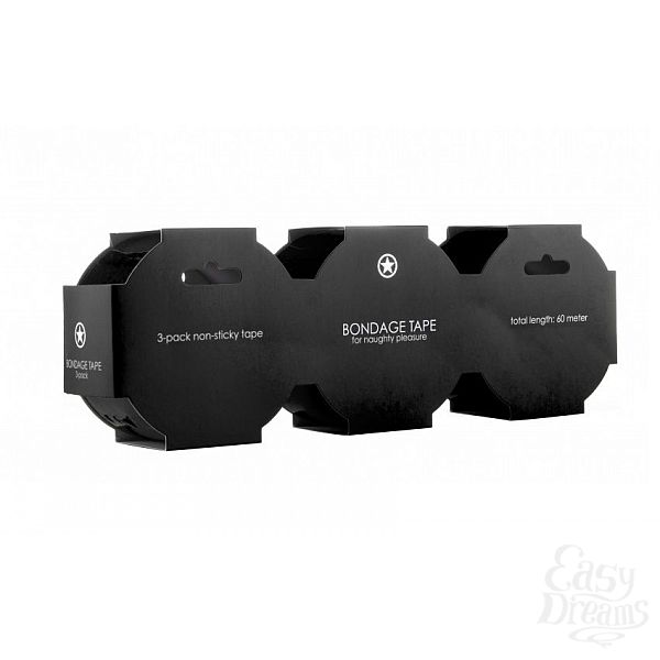 Секс шоп » БДСМ / Фетиш » Наручники / Фиксация » Веревка для бондажа, ленты, шибари » Набор из 3 мотков чёрных лент Bondage Tape длиной 20 метров каждый