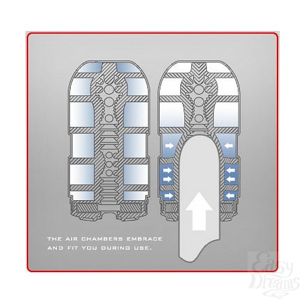 Фантастическое стимулирование теперь возможно благодаря механизму воздушных подушек внутри игрушки. Это первый в мире мастурбатор с воздушными камерами. Уникальное, никогда ранее не испытываемое ощущение облегания достигнуто благодаря изменениям давления воздуха в 24-ех воздушных камерах этого мастурбатора.