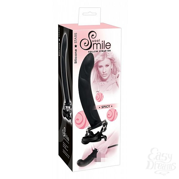 Секс шоп » Страпон » Комплекты с трусиками » Чёрный полый страпон на регулируемых ремешках Smile Spicy