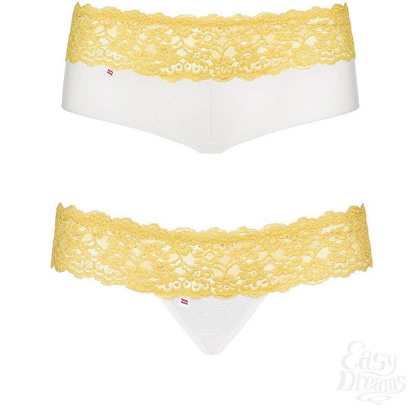 Секс шоп » Эротическое белье » Трусики » Набор из белых шортиков и трусиков-стринг Lacea с цветным ажурным поясом