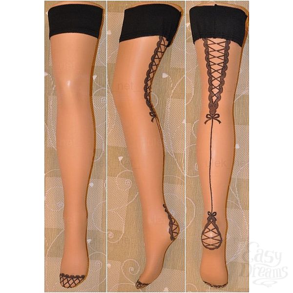 Секс шоп » Эротическое белье » Чулки/Колготки » Чулки » Тонкие чулочки с широкой резинкой и имитацией шнуровки сзади Lea -20 den.