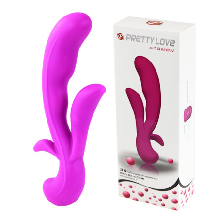 Розовый вибратор с клиторальным отростком Bifun - 16,5 см.