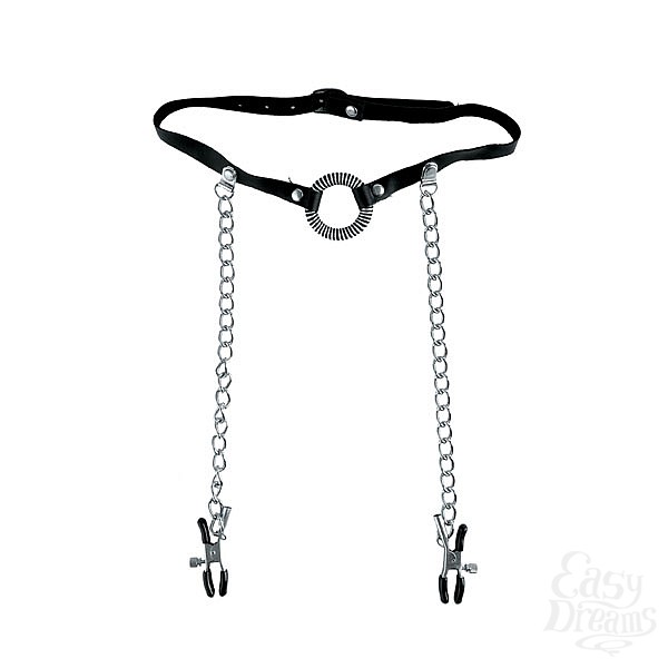 Секс шоп » БДСМ / Фетиш » Зажимы » Кольцо-расширитель для рта с цепочками, соединяющими его с клипсами для сосков